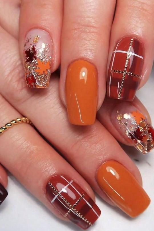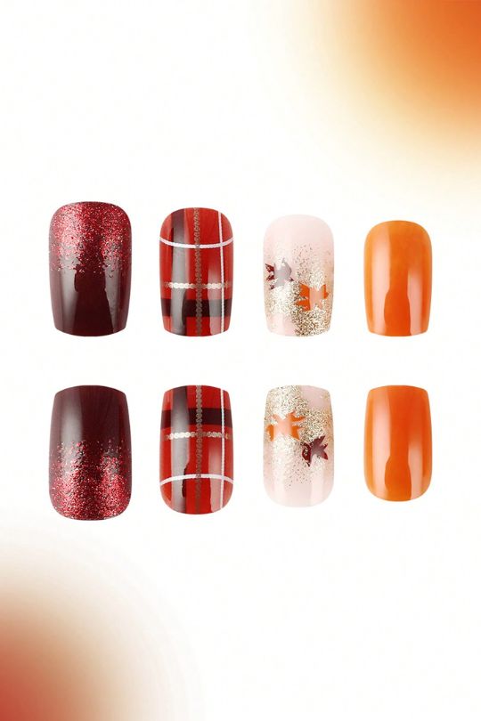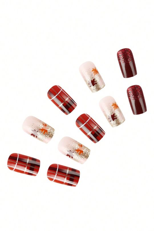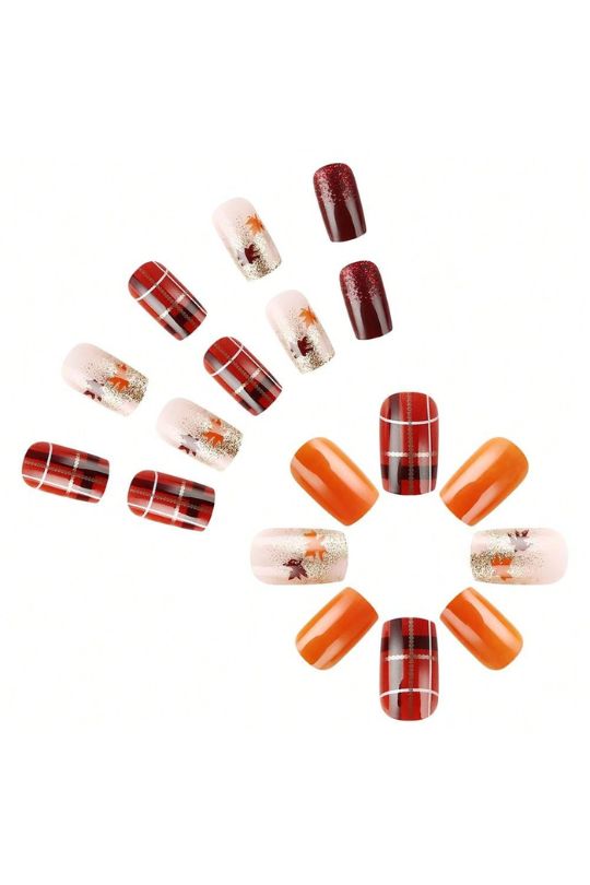 24pcs Maple Leaf Shiny Nail Art False Nail Set