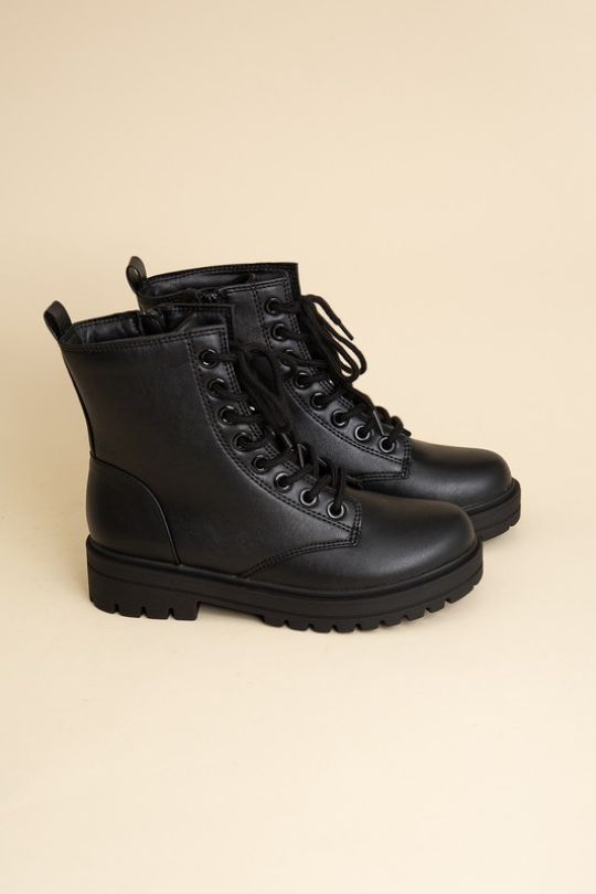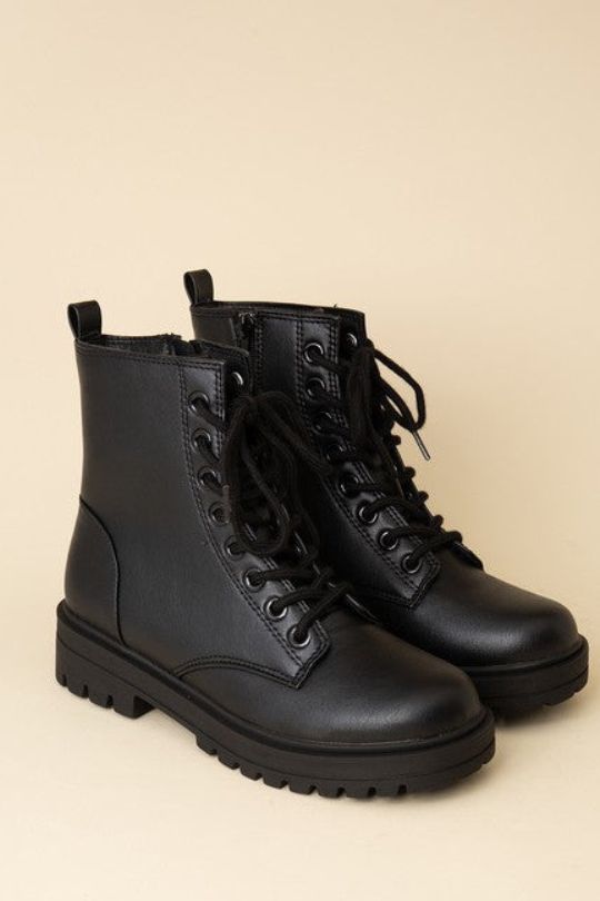 These Black Chunky Lace-Up Combat Boots are the perfect fusion of rugged style and durability. Crafted with quality leather, they offer a sturdy and structured design for long-lasting wear. The scratch-resistant finish ensures your boots stay looking great, while the chunky sole adds both edge and comfort.