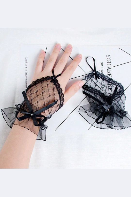 Add a touch of sophistication and drama to your outfit with these timeless black lace gloves.