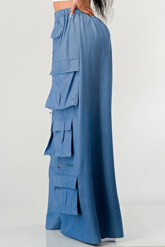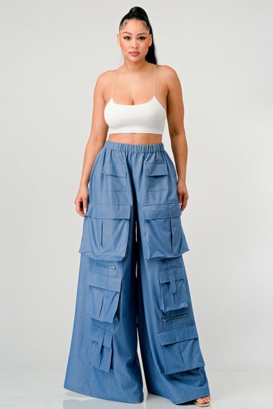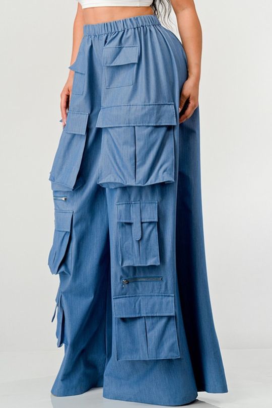 Chic Blue Wide Leg Cargo Pants
