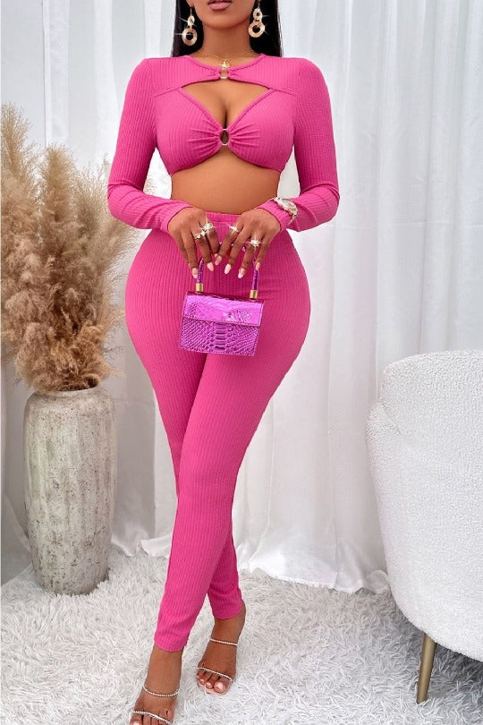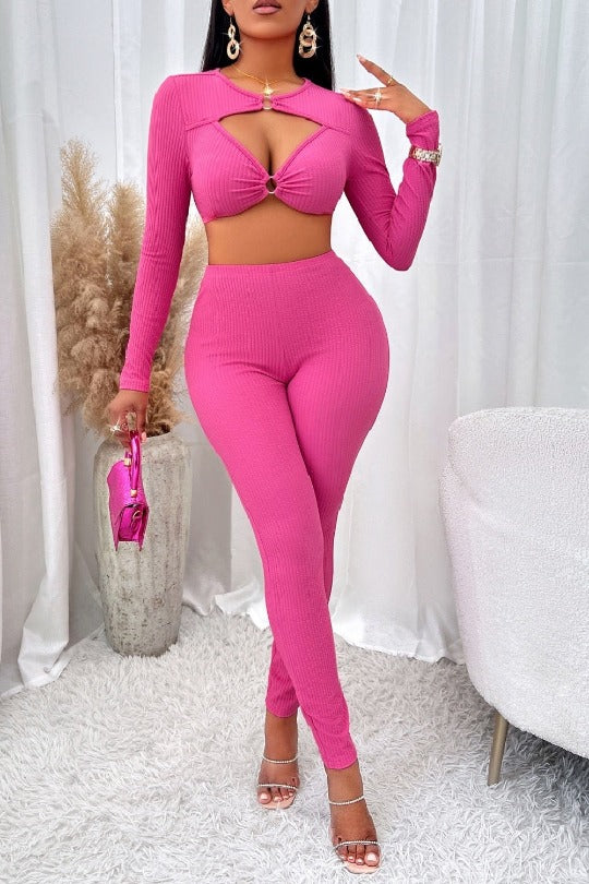 Look and feel your best in this incredible two-piece set featuring unique cutouts for a sexy touch. Made from a comfortable, slightly stretchy blend of 93% polyester and 7% spandex, this set is perfect for any occasion. For easy care, simply machine wash cold and tumble dry low. Elevate your wardrobe with this amazing set now!
