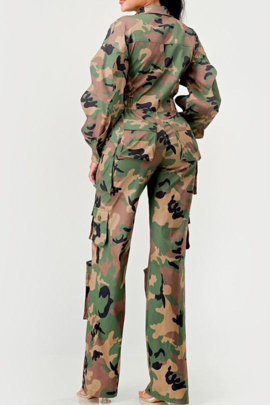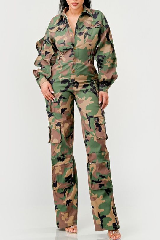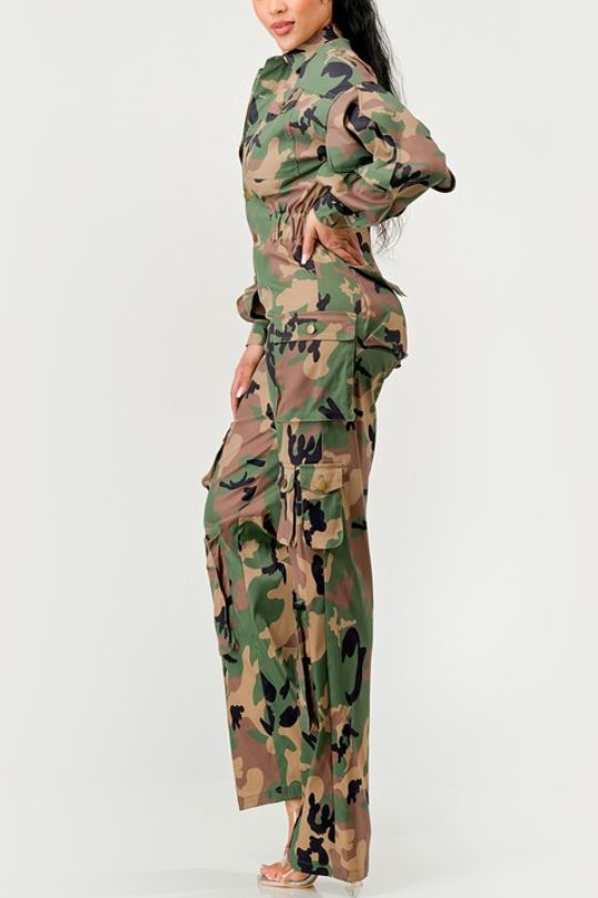 Frontline Camo Ruffle Sleeve Jumpsuit