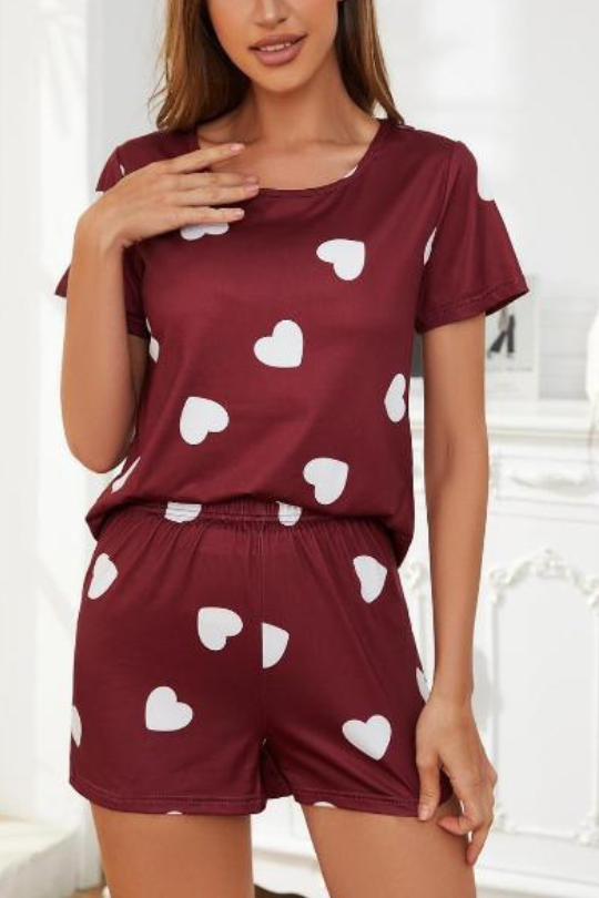 Heart Shaped Top and Shorts Pajama Set