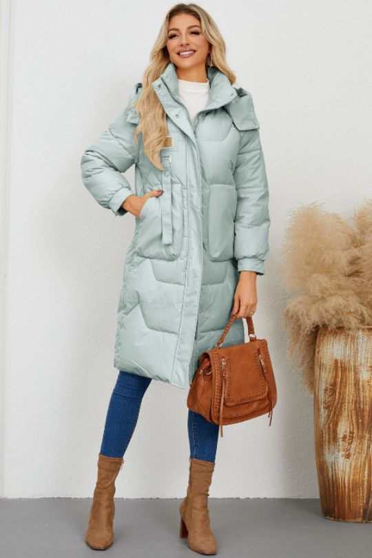 Brave the chill in style with the Long Sleeve Longline Hooded Winter Coat—a sleek, functional piece designed for cold-weather layering. Featuring a flattering midi-length silhouette and a cozy hood, this coat offers full coverage without sacrificing style. The mock neck and dual zipper & snap closure keep the warmth in, while the large pockets provide convenient storage and a laid-back vibe. Made from durable 100% polyester with a normal thickness and no lining, it's perfect for layering over sweaters or lighter jackets.