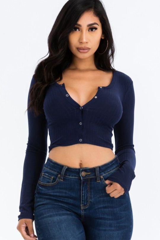 Elevate your wardrobe with this versatile, ultra-comfortable Long Sleeve Snap Button Down Crop Top. Designed for a flattering fit, this top offers a sleek, modern silhouette that's perfect for everyday wear or a date night look.