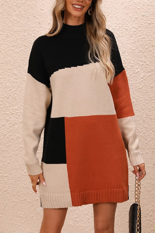 Mock Neck Dropped Shoulder Sweater Dress