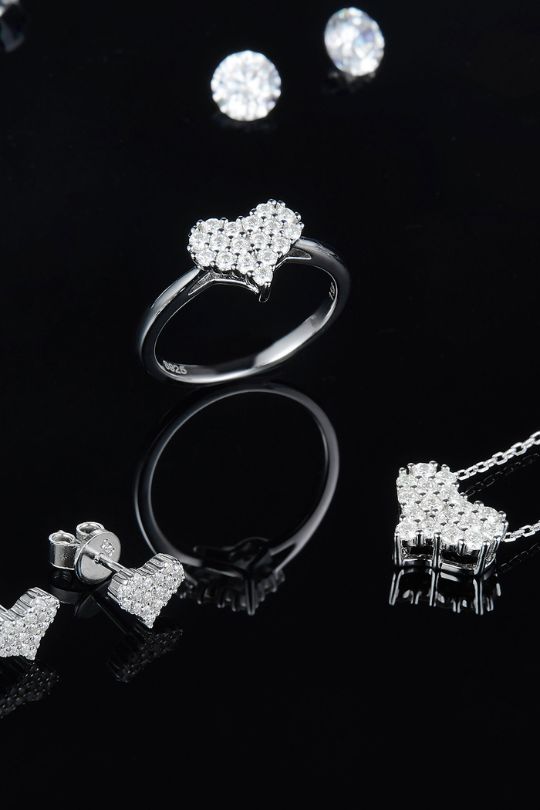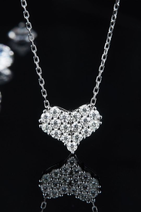 Add a refined, sparkling touch to your Valentine's Day or anniversary gift with these timeless Moissanite Sterling Silver Heart Necklace—where elegance meets brilliance and love shines bright. Match this to complete the full set with our sterling silver heart diamond ring & heart diamond stud earrings.
