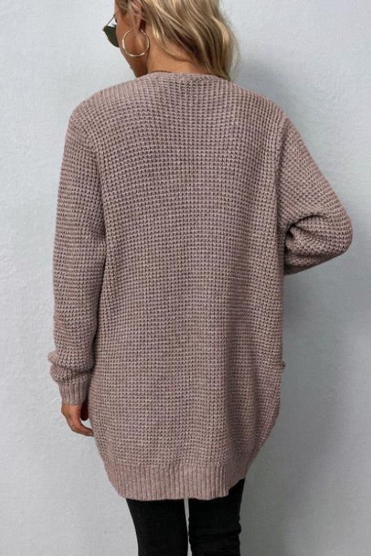Open Front Waffle Cardigan Sweater