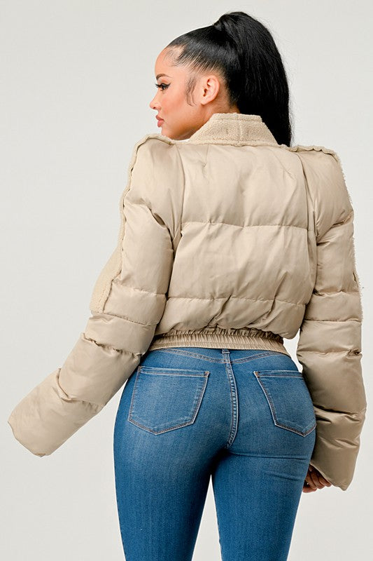 Elevate your winter wardrobe with our Plush Puff Sleeve Bomber Jacket - a perfect blend of cozy comfort and chic style. This jacket redefines the classic bomber silhouette with plush puff sleeves, adding a touch of sophistication to your cold-weather ensemble.