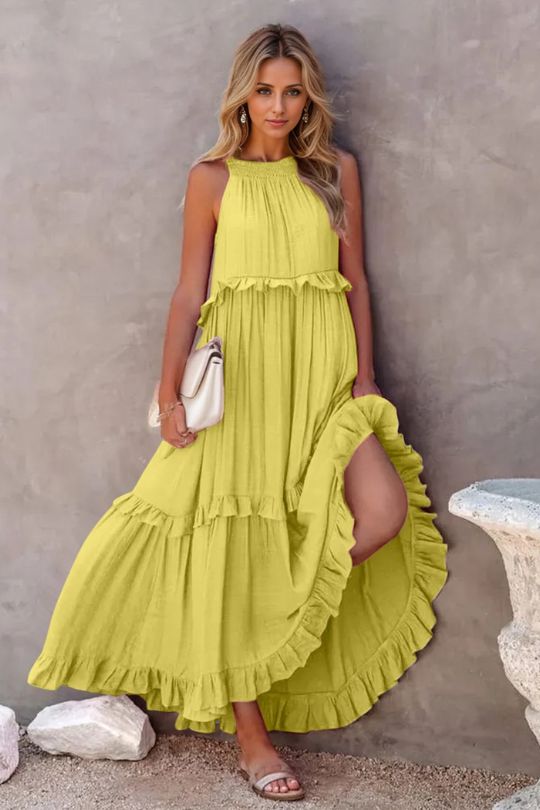 Ruffled Sleeveless Tiered Maxi Dress