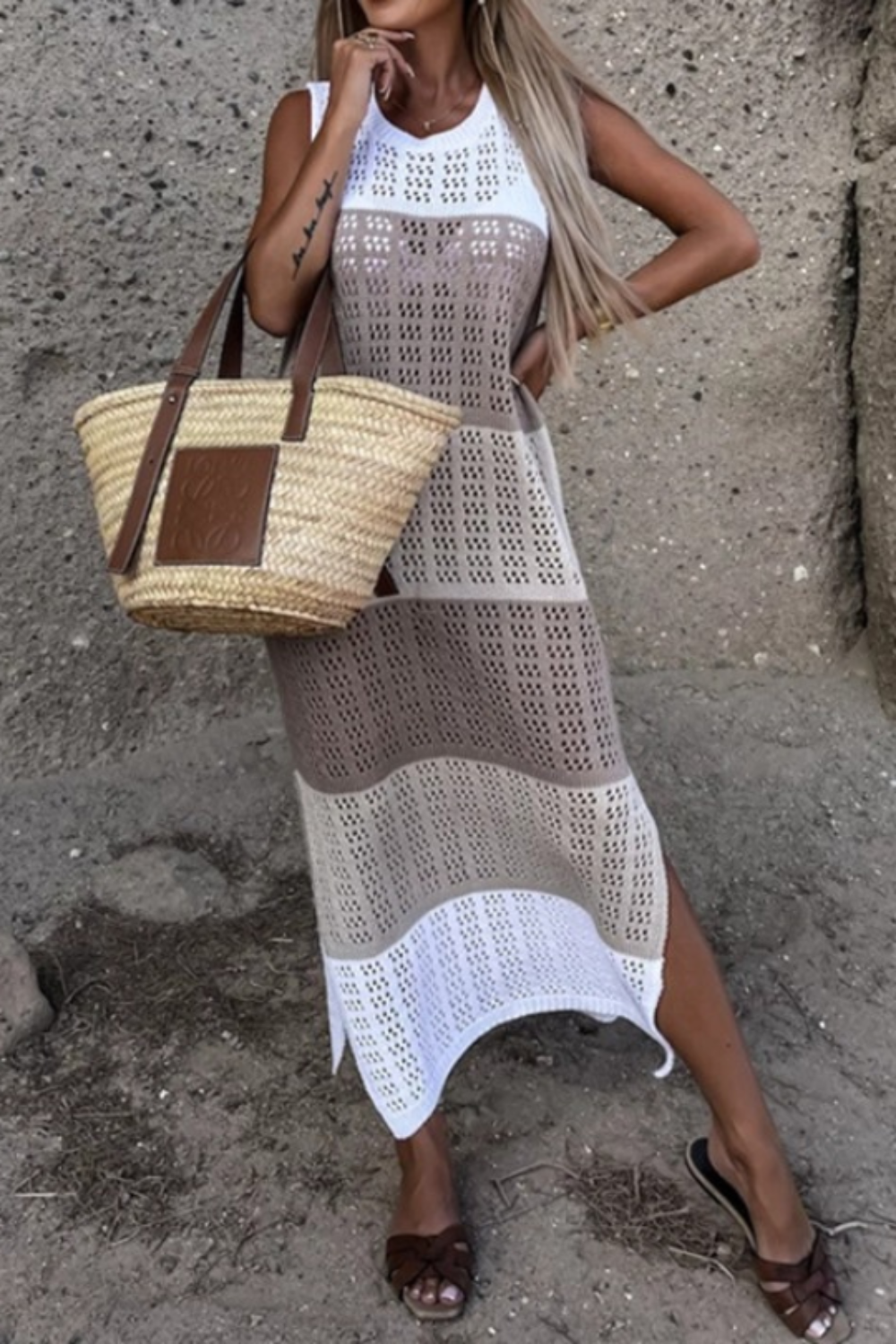 Upgrade your swimwear cover up game with this stunning piece! Made with high-quality, stretchy material that will hug your curves in all the right places. The wide straps, sleeveless design, and openwork feature add a touch of elegance, while the side slit gives you the perfect amount of coverage and ventilation. Crafted with 100% acrylic yarn, this cover up is durable and easy to care for with a simple machine wash and tumble dry low. Don't settle for basic, stand out on the beach with this must-have accessory!