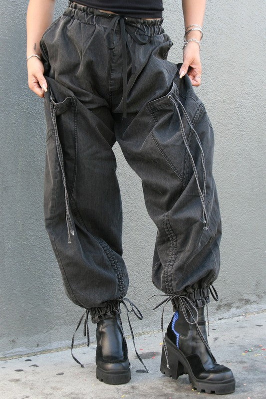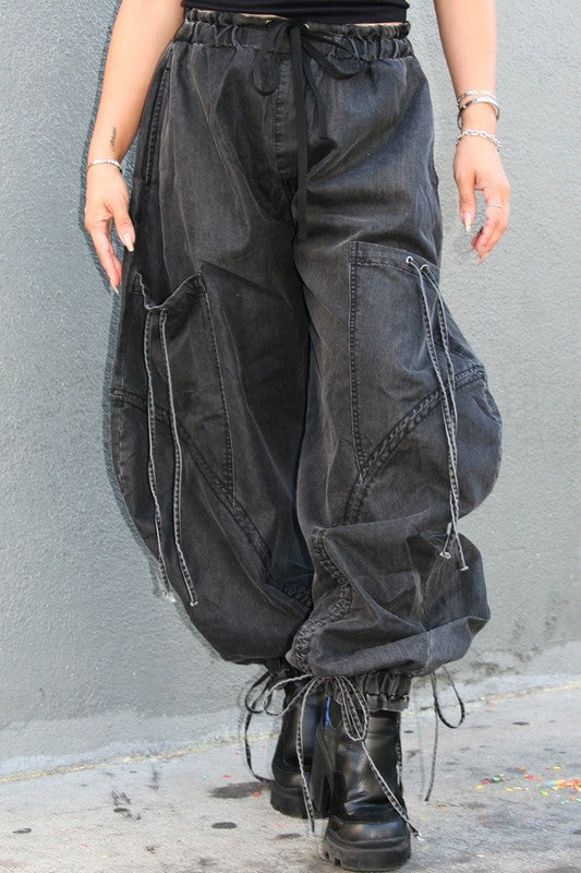 Bring an edge to your wardrobe with the Urban Chic Drawstring Denim Cargo Pants. These relaxed, oversized jeans feature adjustable drawstring waist and cuffs for a custom fit. Functional cargo pockets and durable denim create a modern streetwear feel you can style up or down.