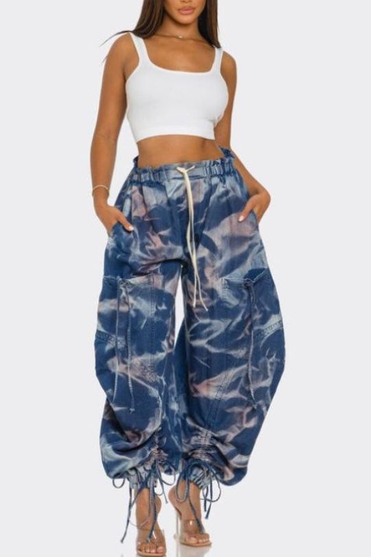 Whether you’re dressing them up with a crop top and heels or going casual with a tee and sneakers, these pants turn every outfit into a trendsetting masterpiece. Redefine your style and own the spotlight with the Urban Chic Drawstring Denim Cargo Pants.