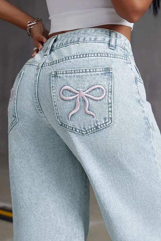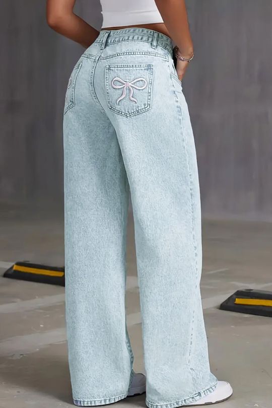 These Women's Bow Detail Wide Leg Jeans combine classic elegance with a touch of playful detail, making them a chic addition to your wardrobe!