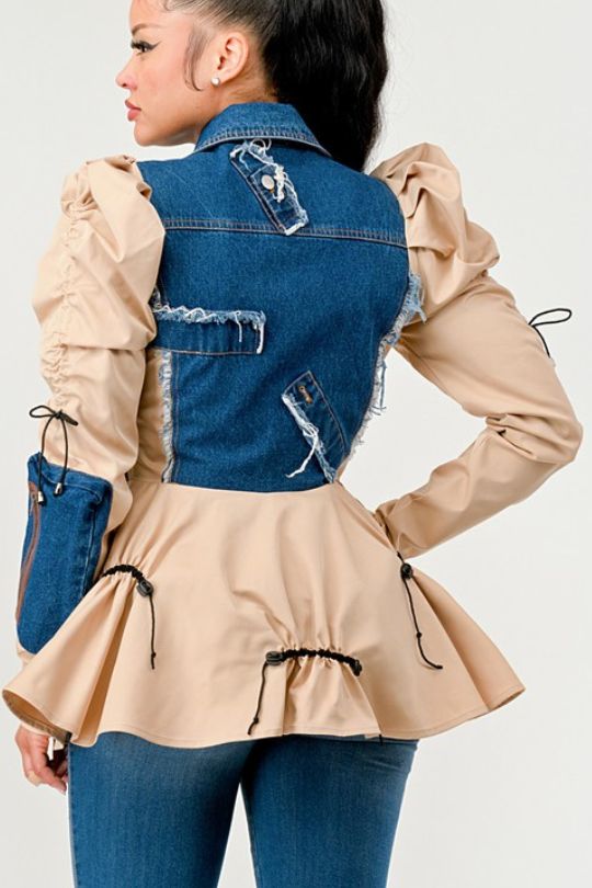 - Flattering Peplum Design: Combines classic denim with a feminine, flared silhouette.