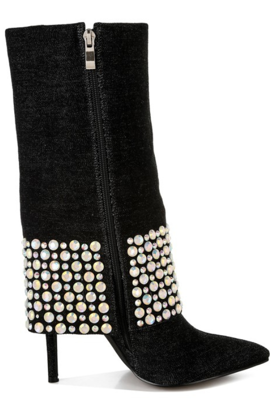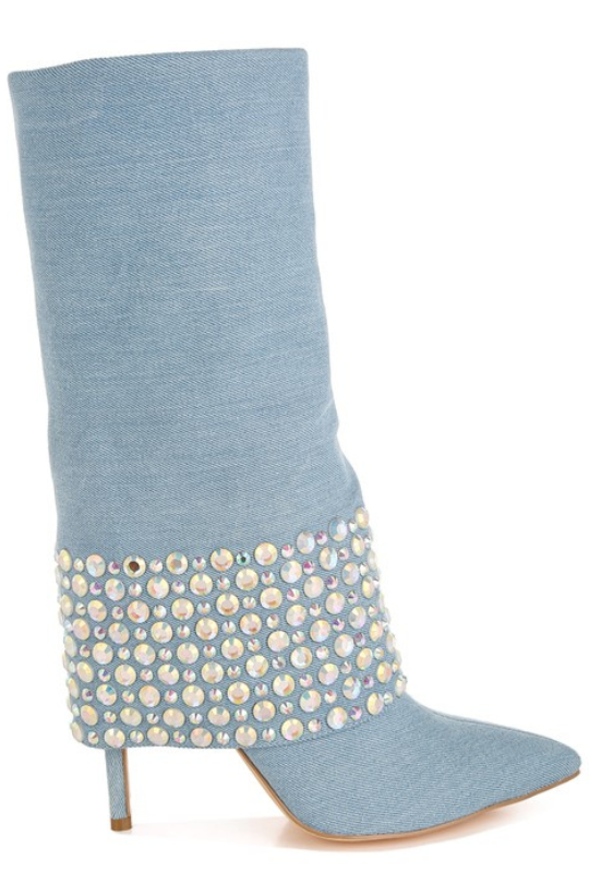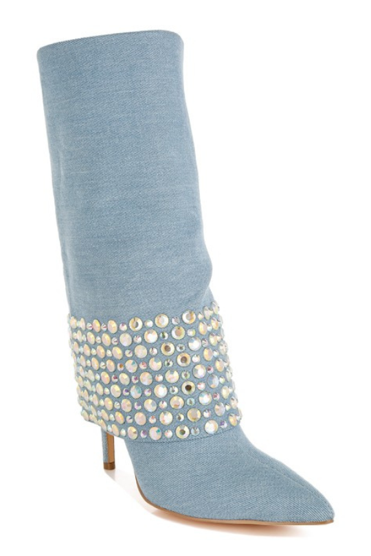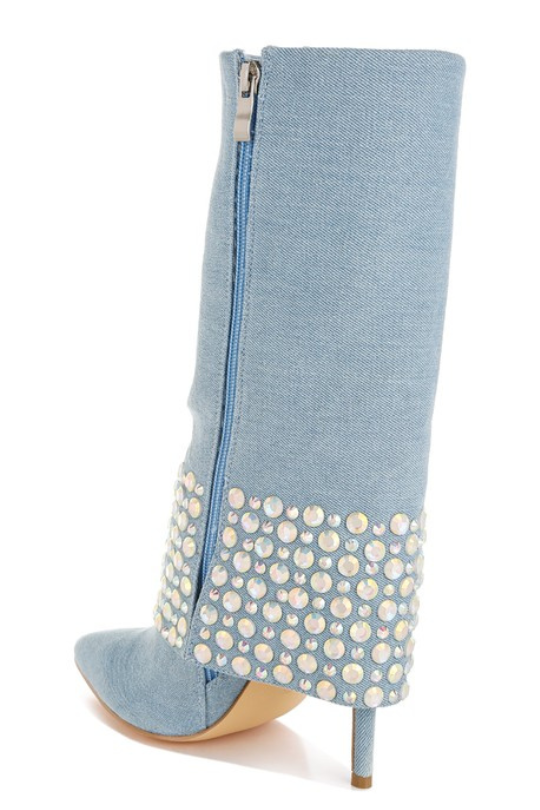 Women's Rhinestone Detail Denim Boots